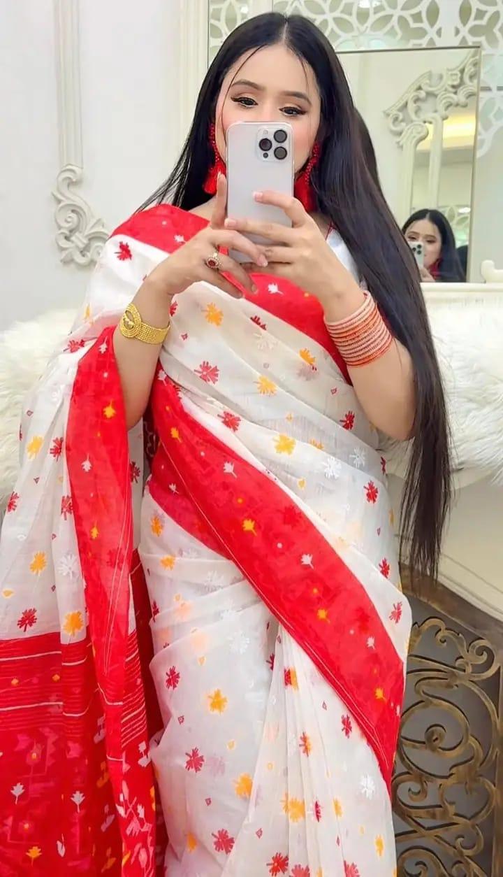 হাফসিল্ক স্কিন পিন্ট শাড়ি ১২ হাত শাড়ি কোন ব্লাউজ পিস নেই lস্কিন প্রিন্ট এর মধ্যে অসম্ভব সুন্দর এই শাড়িগুলো l